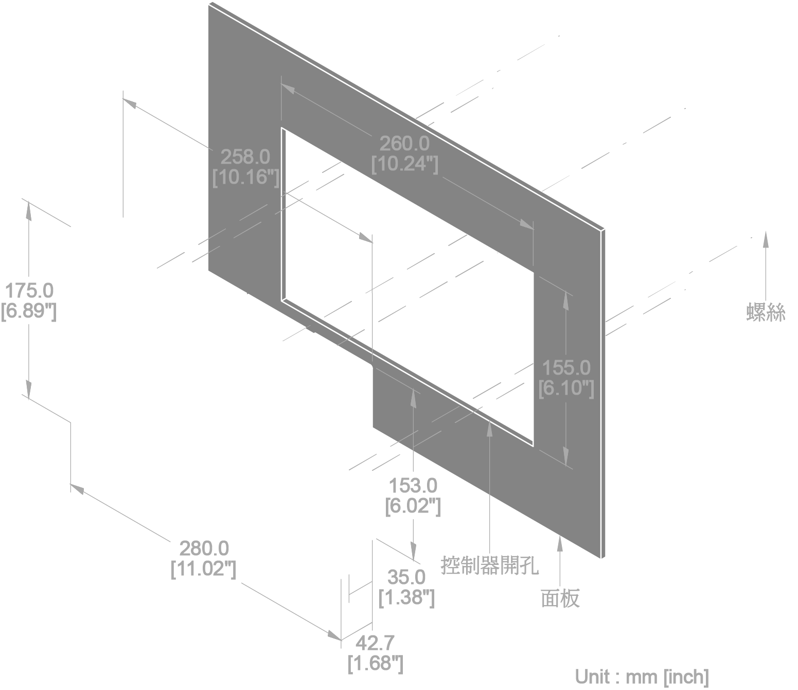 - 7吋液晶彩色面板,螢幕解析度 800 x 480,面板防水等級IP65。